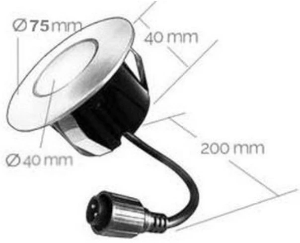 Deze spot heeft een diameter van 75mm. en zijn voorzien van een aansluitkabel van 18cm.