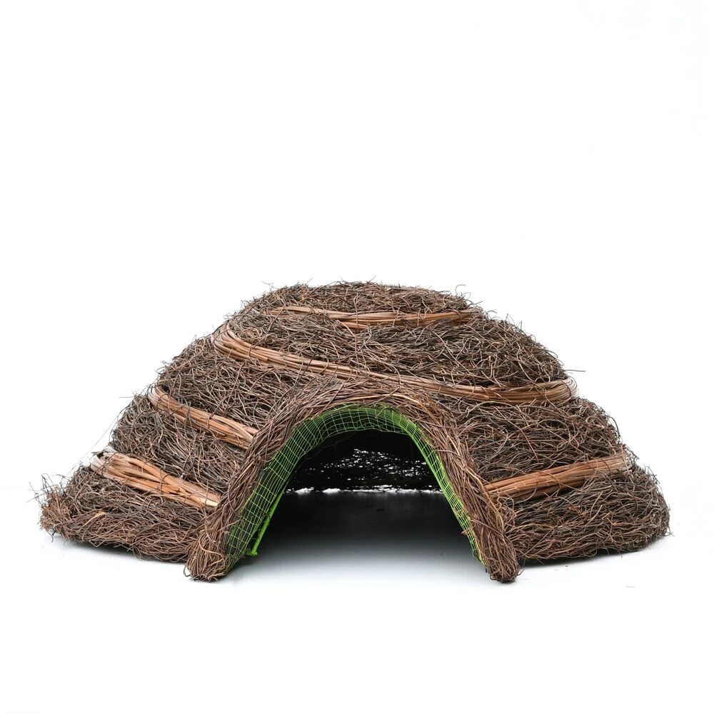 Het rieten Iglo-egelhuis biedt egels en andere zoogdieren een veilig toevluchtsoord van de vele gevaren van het moderne leven – met inbegrip van tuinstrimmers, vorken en gereedschappen, huisdieren en andere roofdieren zoals dassen en vossen.