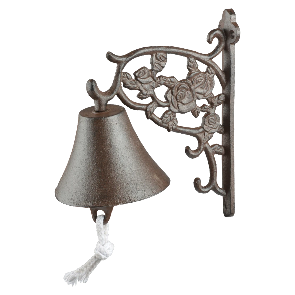 Hang de traditionele gietijzeren deurbel met decoratieve rozen naast de voor- of achterdeur zodat de gasten van zich kunnen laten horen als ze binnentreden. Deze rustieke gietijzeren deurbel is met de hand gegoten volgens eeuwenoud vakmanschap en traditie.