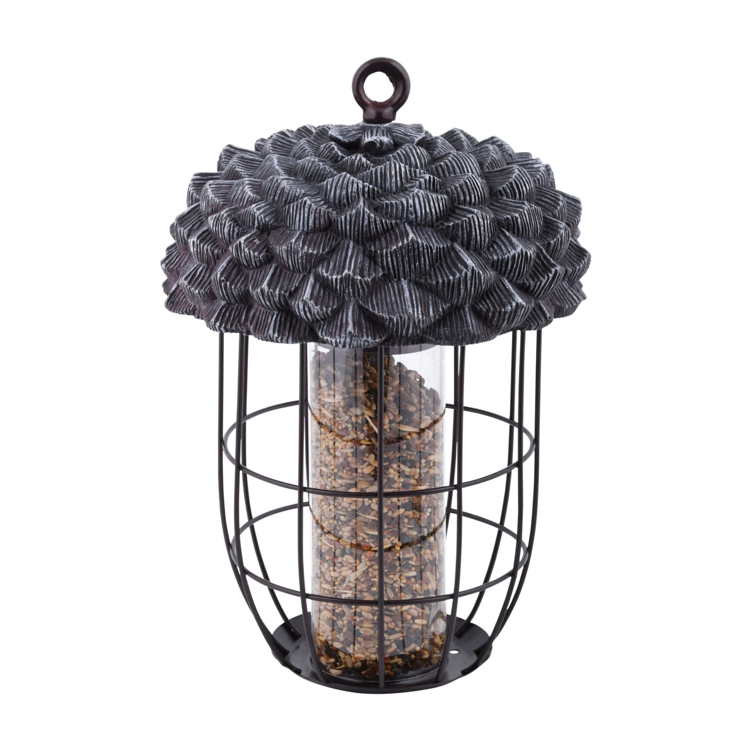 Normaal zijn eikels voedsel voor vogels en eekhoorns. Nu biedt deze eikel voedersilo juist plaats voor voer. De voederhanger kan voorzien worden van bijv. pinda’s en noten. Door het los draaien van de ophangring kan het deksel eraf gehaald worden en kan het onderste gedeelte eenvoudig gevuld worden met voer.