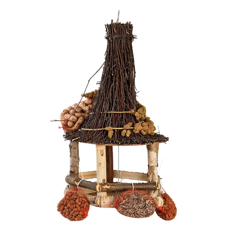 Verwen de vogels in de tuin met deze gevulde vogelvoederhanger. De hanger bevat een aantal lekkernijen voor de vogels. Bekijk de foto voor alle lekkernijen die u kunt verwachten bij de aankoop van dit schattige vogelhuisje. Ook leuk om cadeau te geven.