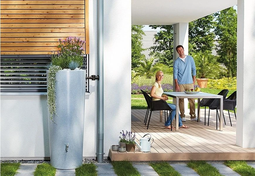 Het decoratieve effect van de traditionele regenton liet wellicht nog te wensen over. Daarom is er de Garantia regenton met plantenbak functie. Deze regenton met dubbele functie vangt tot wel 350 liter hemelwater op en kan fraai worden afgewerkt met uw favoriete planten.