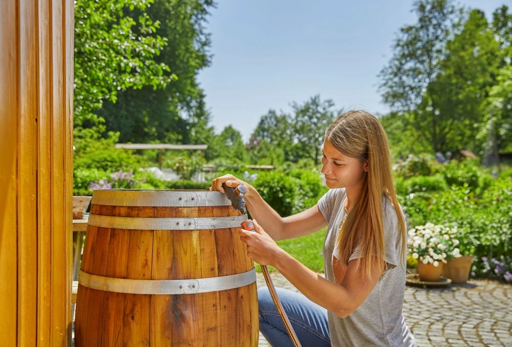 Als u op zoek bent naar comfortabel, extra krachtig en robuust gereedschap, dan is deze pomp iets voor u. De regentonpomp 4700/2 inox is praktisch, efficiënt en gemakkelijk te gebruiken. De pomp heeft een smalle behuizing van slechts 149 mm, is gemaakt van hoogwaardig roestvrijstaal inox en levert tot 4700 liter per uur. Te gebruiken met zowel een tuinspuit als een grotere sproeier zoals de AquaZoom. De pomp is voorzien van een filter dat vuil en andere deeltjes tegen houdt en zo schade aan de pomp voorkomt. En wat gebeurt er als het waterreservoir leeg is? Geen zorgen – het 4700/2 inox-model heeft een drijvende vlotterschakelaar die de pomp automatisch uitschakelt als het water onder een bepaald niveau zakt om drooglopen van de pomp te voorkomen. U kunt de in- en uitschakelhoogte naar wens instellen. Bij een gewenste restwaterhoogte van 5 mm kan de pomp worden ingesteld op continue werking door de vlotter vast te zetten. De geoptimaliseerde telescopische buis draagt ook bij aan het comfort, omdat u het water zonder verlies en knikken over de rand van het vat kunt leiden. Stel de buis eenvoudig af op de gewenste lengte tussen 670 en 870 mm aan uw regenton.
