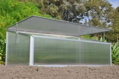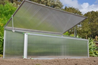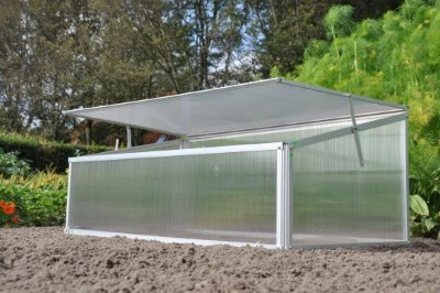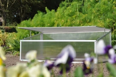 Kennismaken met het plezier in kweken? Samen met de kinderen? Dan is de Viola broeikas een uitstekende keuze. Een kleine investering, direct kweekplezier. Al vroeg in het voorjaar. Deze broeikas bestaat uit een onderhoudsvrij aluminium frame en een kunststof afdichting. De afdichting van polycarbonaat heeft een dikte van 4 mm en is dubbelwandig. Polycarbonaat heeft verschillende voordelen: het is niet gevoelig voor breuk, geheel veilig in gebruik en heeft het bovendien een isolerende werking. De Viola is voorzien van een enkele ‘klep’ aan de bovenzijde voor het beluchten van de planten. De ‘klep’ kan middels 2 uitzetters in 4 standen windvast worden geborgd. Met 4 grondpennen van 25 cm wordt de Viola broeikas met de ondergrond verbonden.
