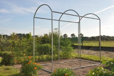 De Maxi Tomato Galva is een ruime foliekas en perfect geschikt voor plaatsing in de (moes)tuin. Deze foliekas bestaat uit een solide frame van verzinkte stalen buizen Ø 25 mm, die met elkaar worden verbonden door stalen koppelstukken. Een uitstekende waterafloop is gegarandeerd door de halfronde dakconstructie. Het geheel wordt overspannen met een frisgroene UV-bestendige en gewapende foliehoes (PE 170 gr/m2) dat een diffuus groeilicht doorlaat. Toegang tot de Maxi Tomato Galva wordt verleend door 2 oprolbare ritsopeningen. Een optimale beluchting van de kas is gegarandeerd door de 4 afsluitbare horrengaasramen, 1 aan beide korte zijden en 2 stuks op de achterzijde van de kas. Verankering van de kas aan de ondergrond gebeurd met behulp van scheerlijnen, stalen grondpennen en door het ingraven van een 25 cm lange folieflap. De hoogte van de Maxi Tomato Galva maakt deze foliekas geschikt voor klimmende gewassen, zoals tomaten, augurken en komkommers.