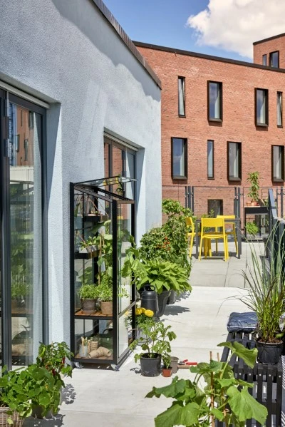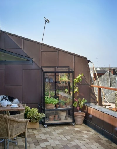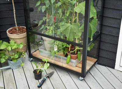 Een moderne verrijdbare patiokas voor op het (dak)terras of de veranda. Deze zwart gecoate kas heeft een glazen achterwand waardoor de kas op alle plaatsen licht opvangt. De City Garden heeft één dakraam voor het beheersen van de temperatuur en wordt geleverd inclusief 4 zwenkwielen waarbij er 2 met klem. In de City Garden kunt u kweken op 2 niveau’s door de 2 luxe cederhouten schappen en de hoge en een lage glazen schuifdeur.