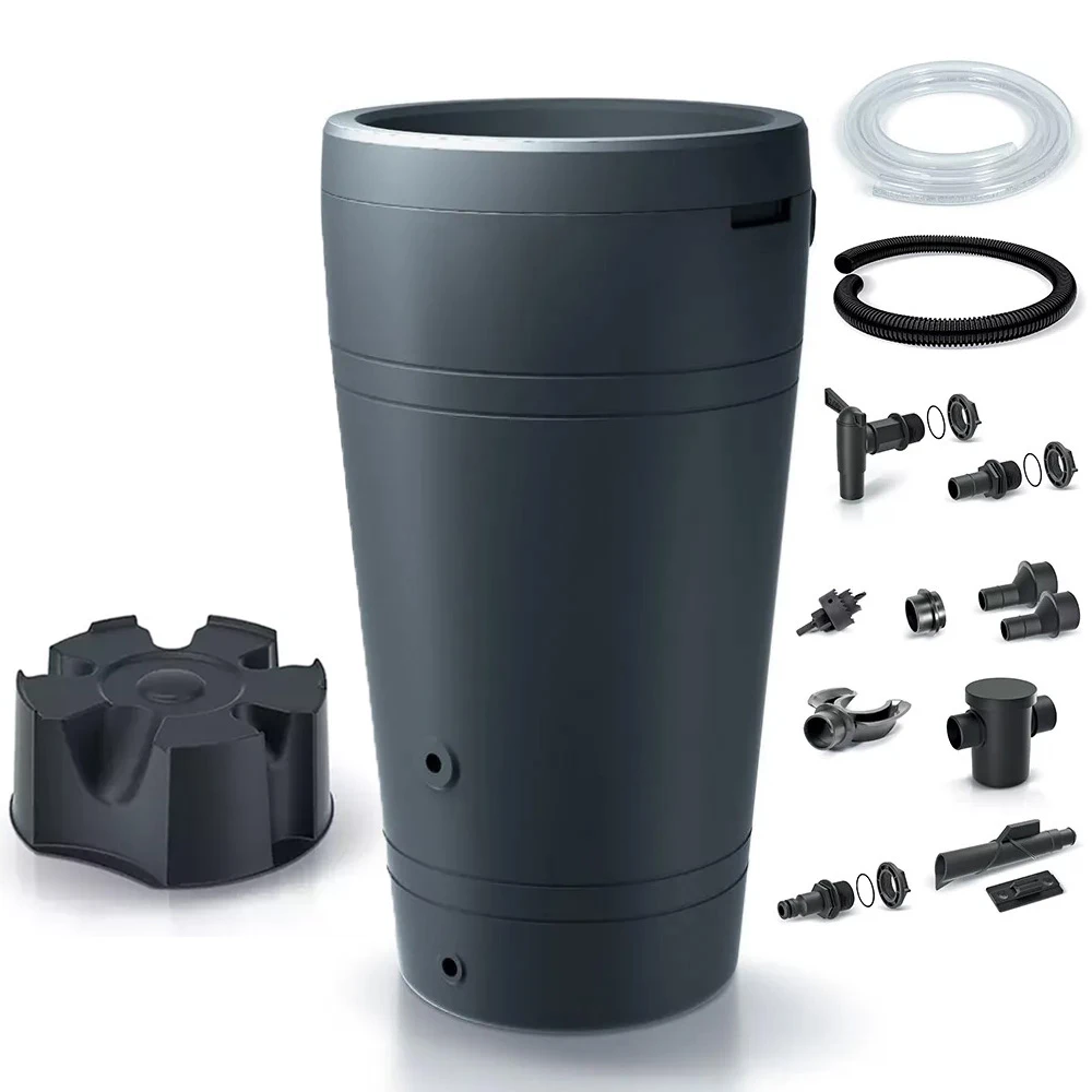 Deze regenton Tube heeft een inhoud van 230 liter. De regenton is voorzien van een bovengat met deksel en een enkel draadgat voor een kraan of een tuinslang koppeling. Je kunt zelf bovenin een plantbak kwijt. Er wordt namelijk een kunststof plantenbak meegeleverd die precies past in de regenton. De plantenbak is zo gemaakt dat het overtollige water in de plantenbak de regenton in loopt. Een extra toevoer van water in de regenton. De plantenbak is makkelijk op te tillen door de opening in de regenton.