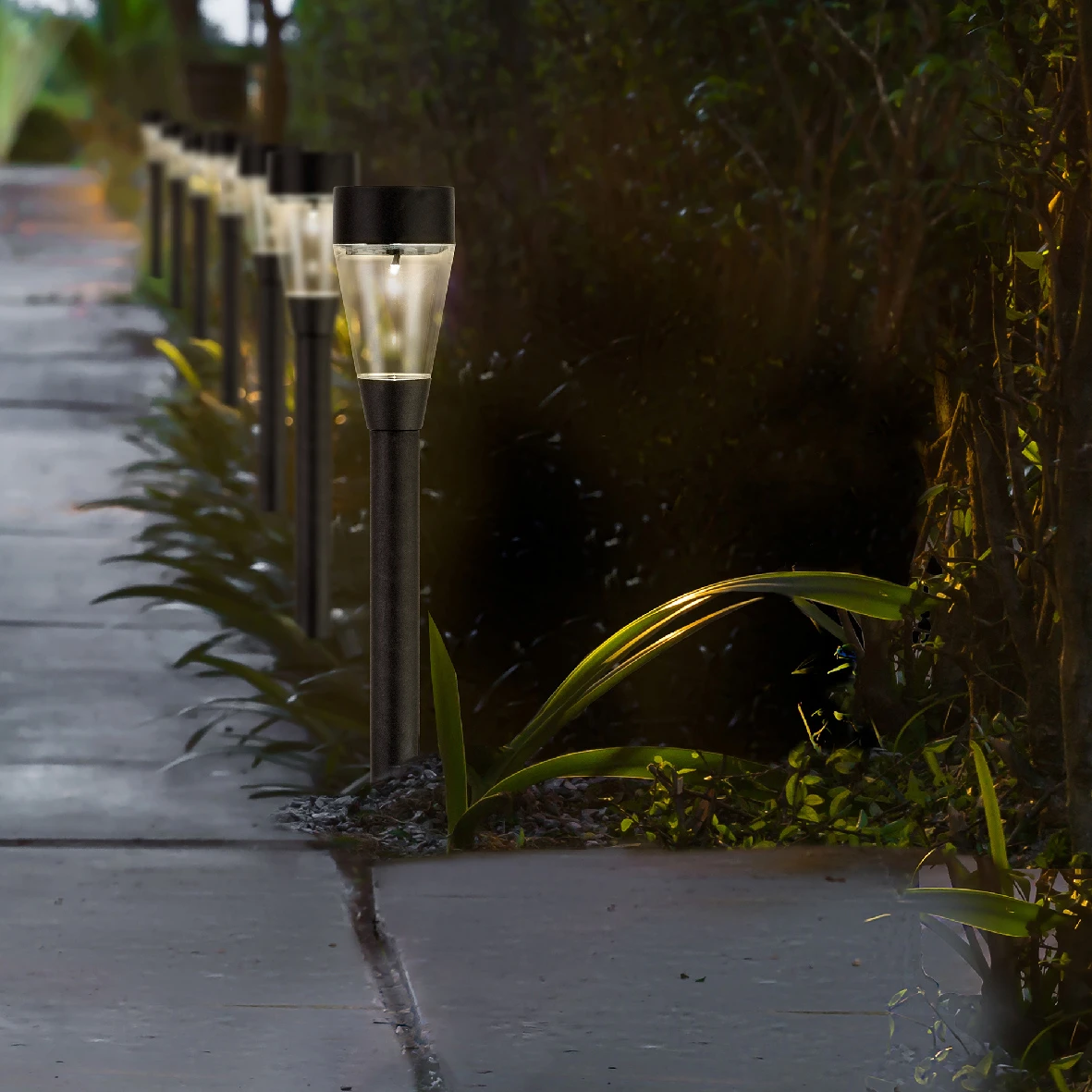 Deze solar staande tuinlampen werken met een zonnepaneel. Deze set bestaat uit een 10 tal tuinlampen met ieder een solar paneel.